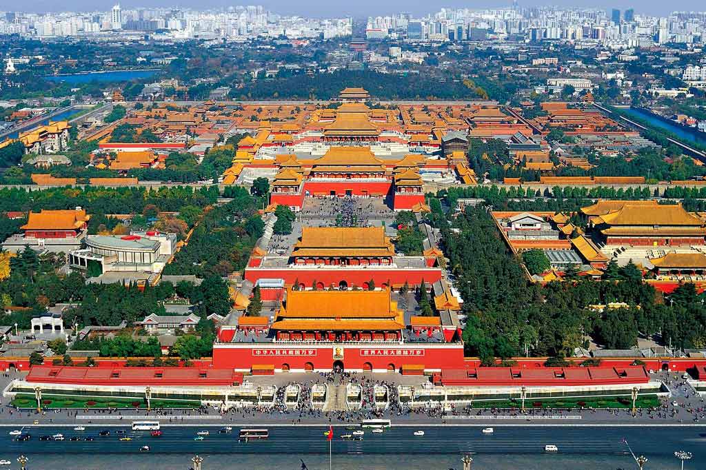 Запретный город - это большой импрераторский дворец (Википедия говорит, что в нем жили императоры от династии Мин до династии Цин с 1420 по 1912 годы, то есть это практически наш Кремль). Комплекс очень огромный. Образован как множество дворов, следующих друг за другом, иногда вложенных друг в друга. Вот, нашла картинку в Интернете, чтобы можно было представить устройство дворца и его масштаб